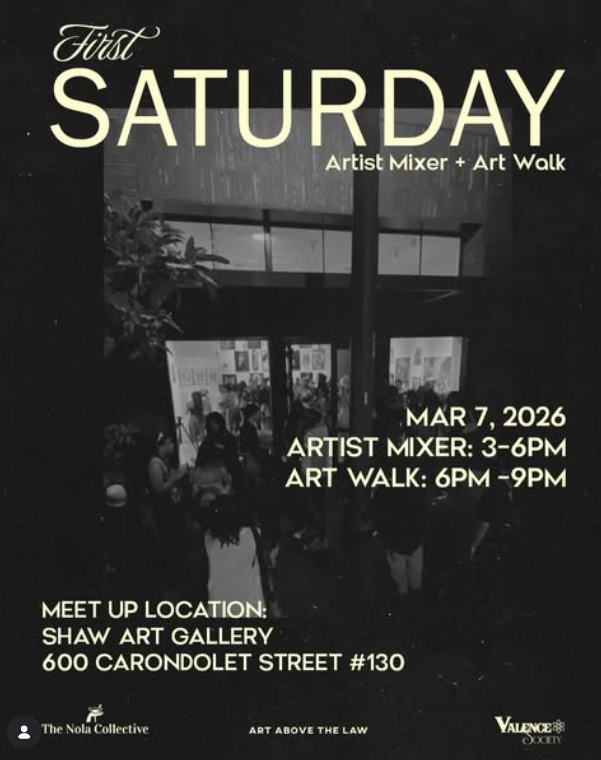 First up, since it’s the first Saturday of the month, the Julia Street and Magazine Street Art Walks are back. We’re excited to be co-sponsoring an artist mixer and walk on Julia Street this Saturday. If you’ve been meaning to check out the art walks but didn’t want to go alone, this is a great chance to join a group and meet some amazing people while exploring the galleries. Check out the details below.